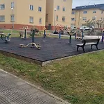 公寓有很多休闲设施,如游戏的场所 和花园.